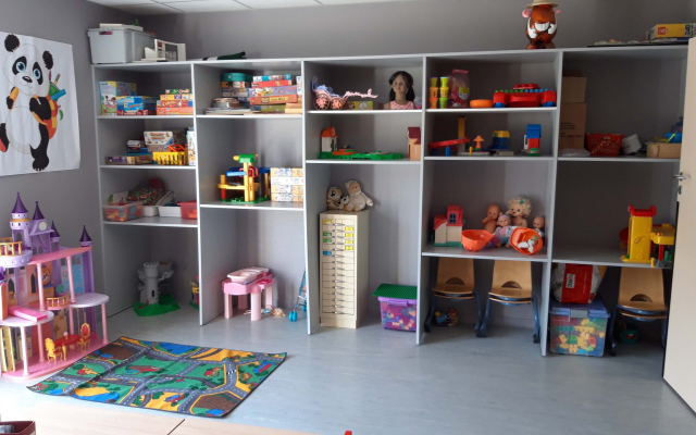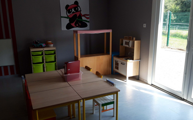 L’accueil bénéficie de quatre salles adaptées, d’une cour extérieure. Les locaux sont aménagés pour permettre des activités collectives ou individuelles :